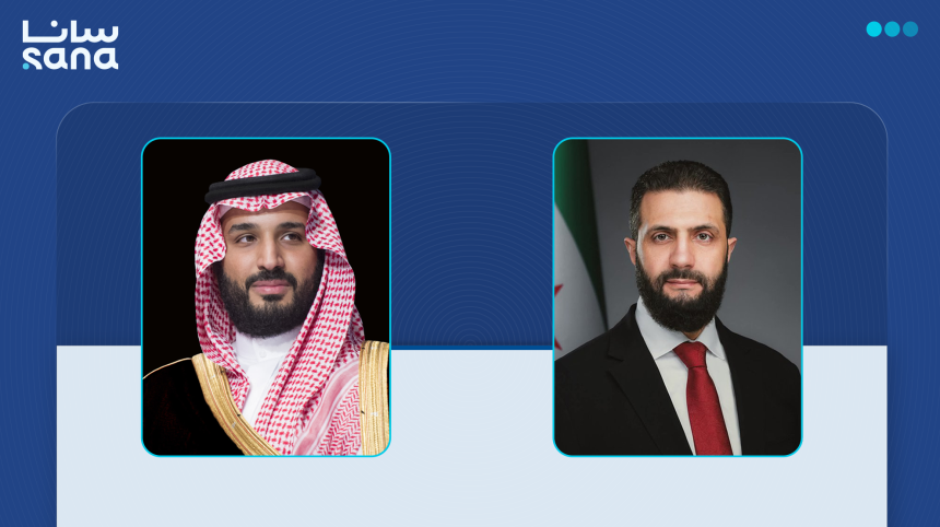 أجرى الرئيس أحمد الشرع اتصالاً هاتفياً، اليوم، مع ولي العهد رئيس مجلس وزراء المملكة العربية السعودية، الأمير محمد بن سلمان بن عبد العزيز آل سعود.