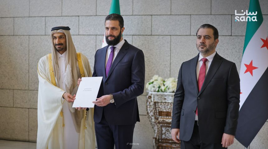الرئيس الشرع يتقبل أوراق اعتماد سفير دولة قطر لدى سوريا أحدث الأخبارأخبار العروبةرئيسي في 10 كانون أول , 2025 تقبل الرئيس أحمد الشرع أوراق اعتماد السفير خليفة عبد الله آل محمود، سفير دولة قطر لدى الجمهورية العربية السورية، بحضور وزير الخارجية والمغتربين أسعد حسن الشيباني. شارك FacebookWhatsAppFacebook MessengerTelegramTwitter