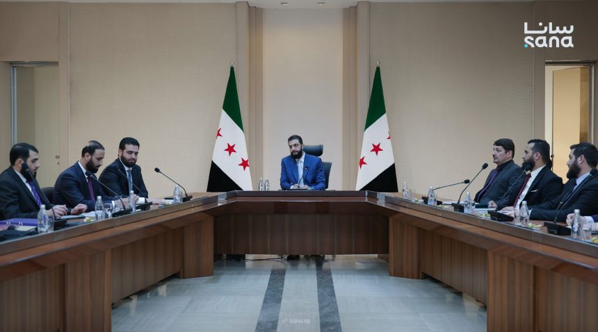عقد الرئيس أحمد الشرع في دمشق جلسة مع وفد من وزارة الداخلية – الإدارة العامة للشؤون المدنية، برئاسة وزير الداخلية أنس خطاب.