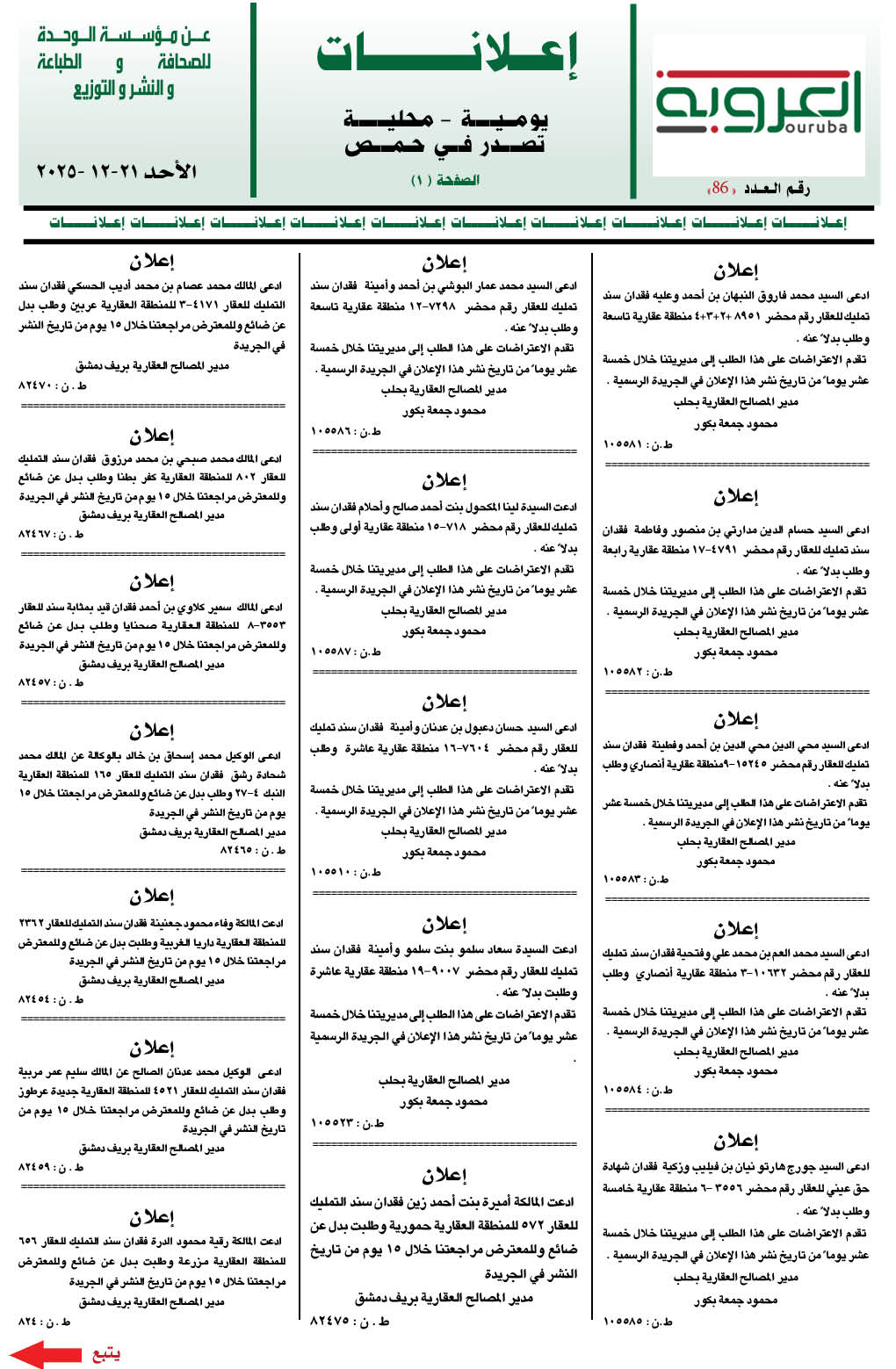 إعلانات العروبة إعلانات في 21 كانون أول , 2025 شارك FacebookWhatsAppFacebook MessengerTelegramTwitter