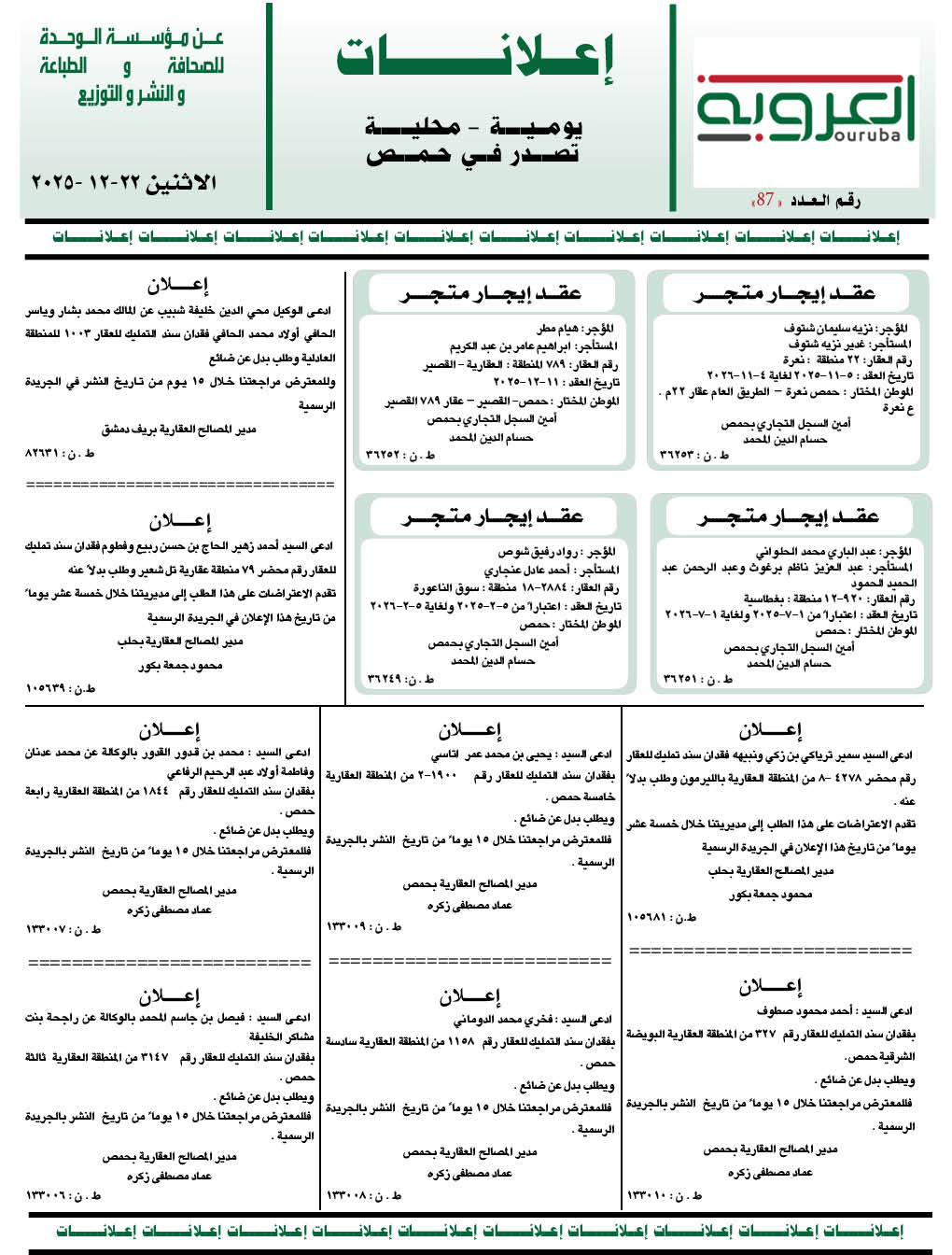 إعلانات العروبة إعلانات في 22 كانون أول , 2025 شارك FacebookWhatsAppFacebook MessengerTelegramTwitter