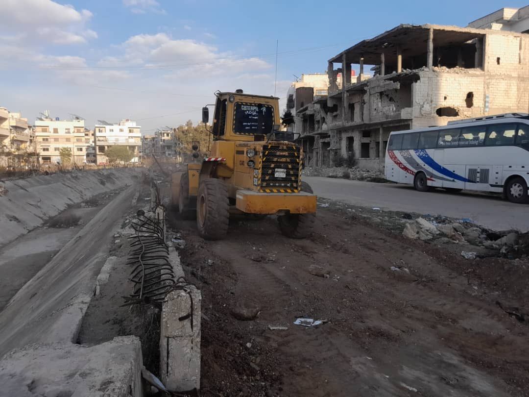 وبين خضور أن الأعمال تتضمن تنظيف قناة الري من الأوساخ المتراكمة فيها و تأهيل الحديقة في مدخل حي الخالدية لتأمين متنفس حضاري و ملائم للأهالي.