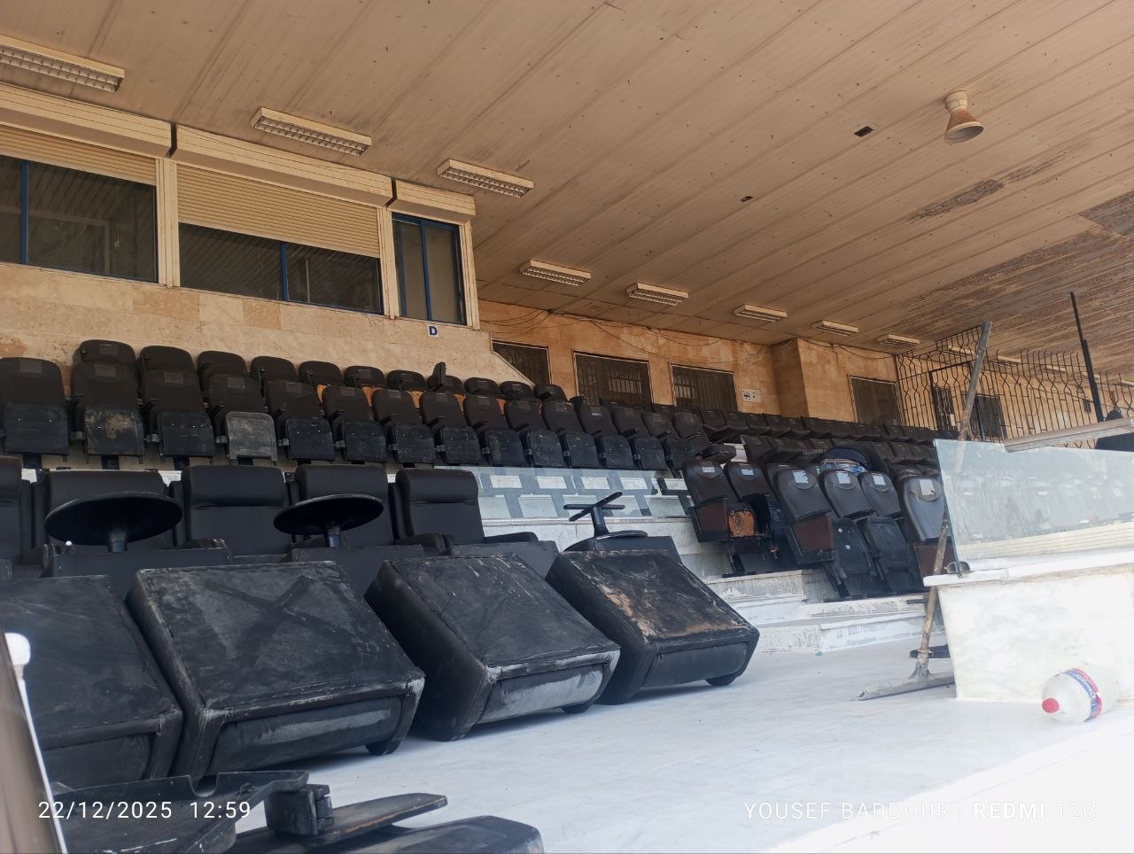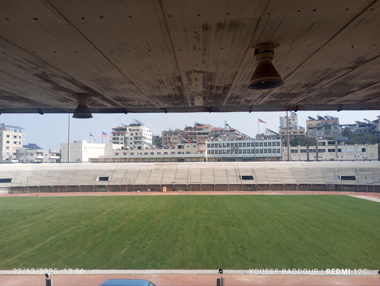 وعن أبراج الإنارة في الملعب أشار دالاتي أن اكبالها مسروقة والإضاءة تالفة وسيتم العمل في المرحلة المقبلة على إعادة تأهيل الأبراج وصيانتها ليكون الملعب جاهزا بكافة مستلزماته ويعود ليستقبل اللاعبين والجمهور ويقدم السعادة للناس .