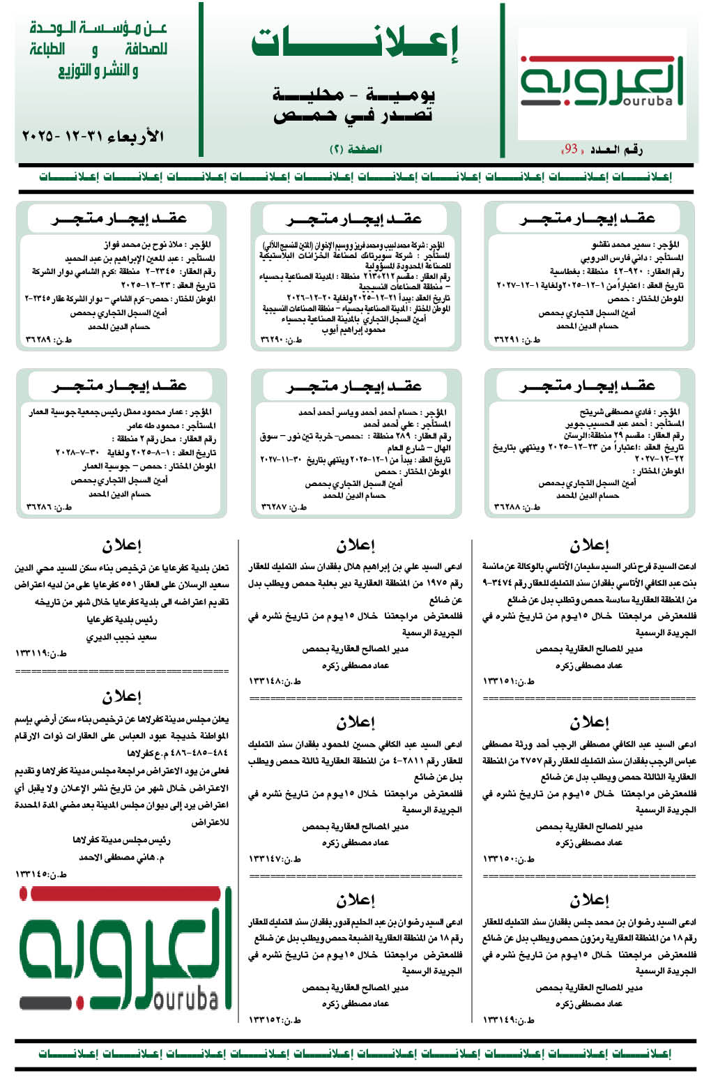 إعلانات العروبة إعلانات في 31 كانون أول , 2025 شارك FacebookWhatsAppFacebook MessengerTelegramTwitter
