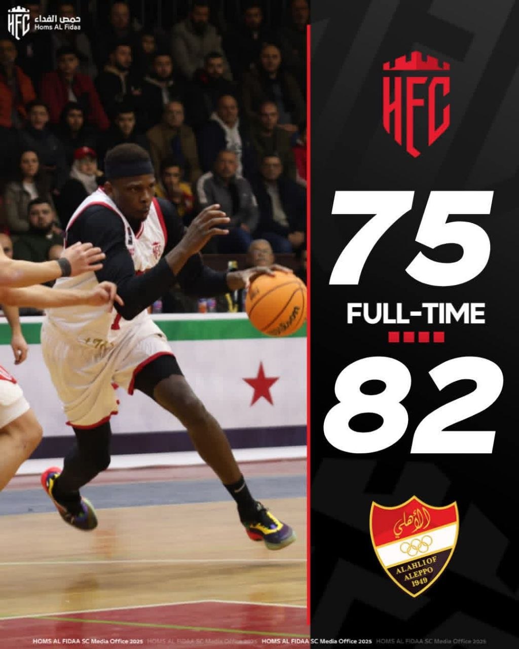 خسر فريق حمص الفداء لكرة السلة بفارق 7 نقاط أمام أهلي حلب في المباراة التي جمعت الفريقين في صالة غزوان أبو زيد في حمص، ضمن منافسات الجولة الرابعة من ذهاب الدوري السوري لكرة السلة.