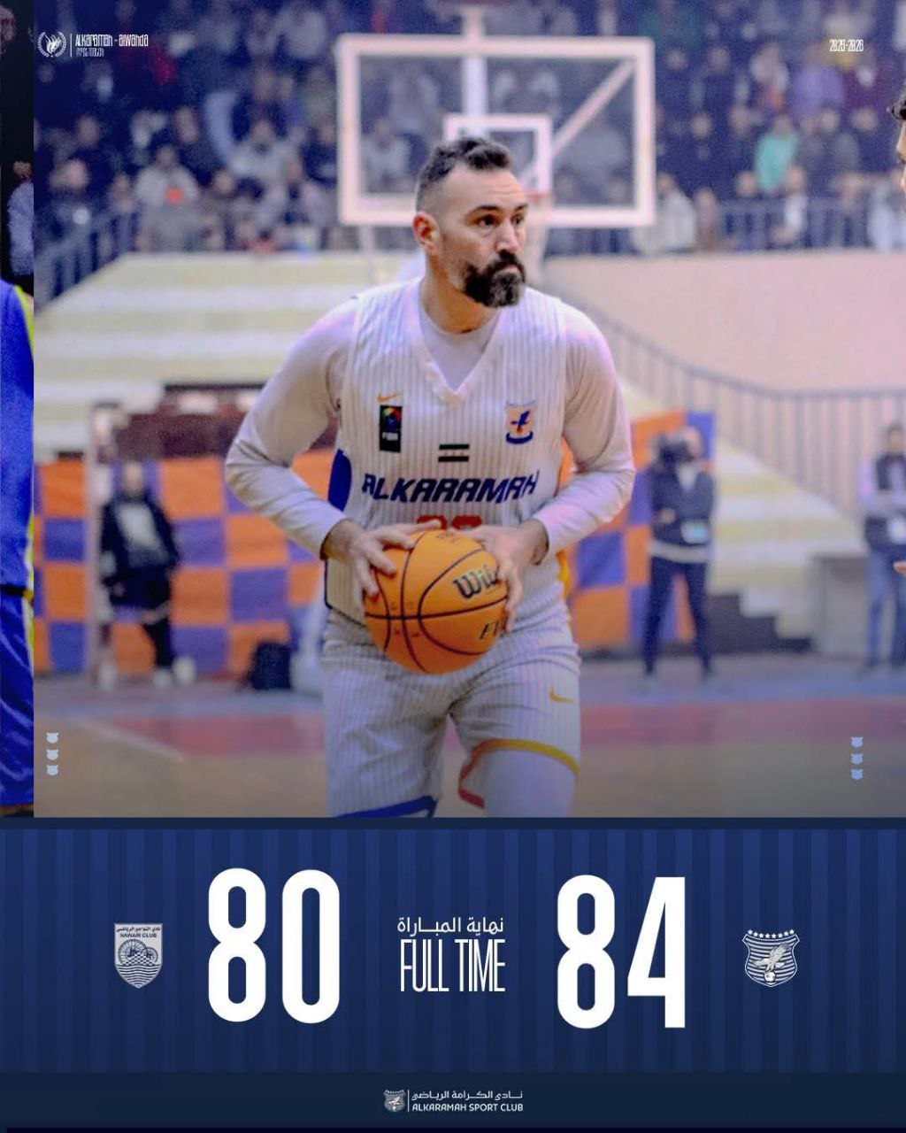 حسم فريق الكرامة لكرة السلة مواجهته أمام النواعير في صالة غزوان أبو زيد، ضمن منافسات الجولة الخامسة من دوري كرة السلة، لمصلحته بفارق أربع نقاط، معززاً صدارته لترتيب الدوري.