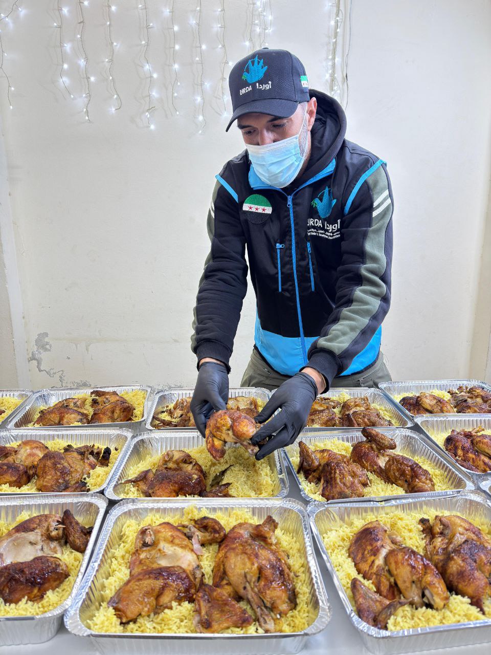 ولفت هزاع إلى أن الوجبة الواحدة تضمنت كيلوغراماً من الأرز، وفروجاً كاملاً، وكيلوغراماً من اللبن، وجرى تقديمها لـ100 أسرة مستفيدة، مؤكداً أن اختيار الأسر يتم بالتنسيق مع مندوب قسم الإحصاء في مديرية الشؤون الاجتماعية والعمل في المنطقة التي يُنفذ فيها التوزيع، لضمان وصول الدعم إلى مستحقيه وفق معايير واضحة.