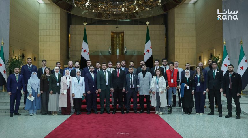 التقى الرئيس أحمد الشرع في قصر الشعب بدمشق يوم الإثنين، عدداً من ممثلي فئة الشباب من مختلف المبادرات والقطاعات، حيث استمع إلى مداخلاتهم وآرائهم حول سبل تمكين الشباب وتطوير مهاراتهم، ودعم المبادرات الشبابية، بما يسهم في تعزيز دورهم في عملية البناء الوطني.