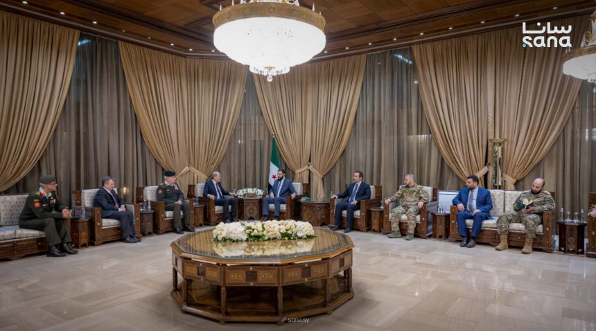استقبل الرئيس أحمد الشرع في دمشق مساء اليوم وفداً أردنياً رفيع المستوى برئاسة نائب رئيس الوزراء وزير الخارجية أيمن الصفدي، وبمشاركة رئيس هيئة الأركان المشتركة اللواء يوسف الحنيطي ومدير المخابرات العامة اللواء أحمد حسني، وذلك بحضور وزير الخارجية السورية أسعد حسن الشيباني ووزير الدفاع مرهف أبو قصرة ورئيس جهاز الاستخبارات حسين السلامة ورئيس هيئة الأركان العامة اللواء علي النعسان.