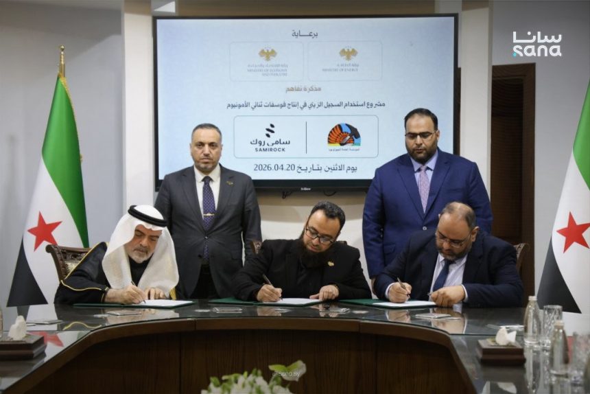 برعاية وزارتي الطاقة والاقتصاد والصناعة.. وقعت المؤسسة العامة للجيولوجيا والثروة المعدنية مذكرة تفاهم مع شركة سامي روك (SAMIROCK) السعودية لإطلاق مشروع استخدام السجيل الزيتي في إنتاج فوسفات ثنائي الأمونيوم، وذلك في مبنى وزارة الطاقة في دمشق.