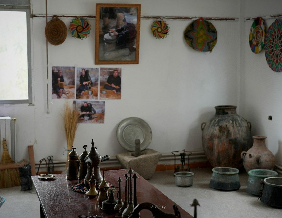 إلى جانب اللوحات، برزت الحرف اليدوية بوصفها شاهداً على تحولات الحياة الريفية، حيث عرض عمر الخولي نماذج من مكانس القش التي يصنعها من نبات “المكنس”، وهو نبات كان يُزرع على أطراف بساتين نهر العاصي في منطقة القصير.