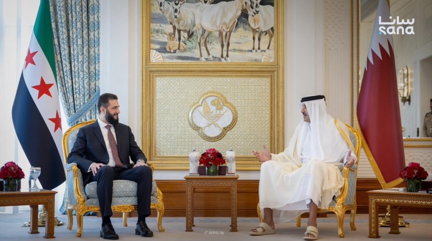 التقى الرئيس أحمد الشرع في الدوحة أمير دولة قطر الشيخ تميم بن حمد آل ثاني.