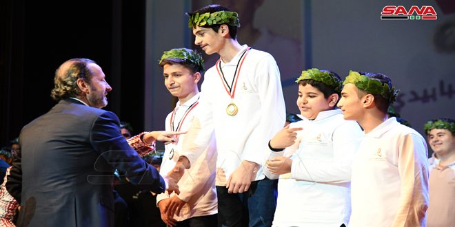برعاية السيدة أسماء الأسد كرمت هيئة التميز والإبداع اليوم الفائزين بالمراكز الـ 15 الأولى في منافسات الأولمبياد العلمي السوري لموسم 2019-2020 بعلوم “الرياضيات والفيزياء والكيمياء والمعلوماتية وعلم الأحياء” وذلك على مسرح قصر المؤتمرات بدمشق.