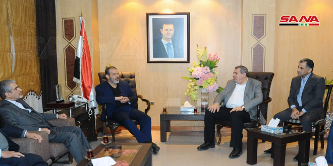 بحث وزير التجارة الداخلية وحماية المستهلك الدكتور عاطف النداف وأمين لجنة تنمية العلاقات الاقتصادية بين إيران وسورية مستشار النائب الأول للرئيس الإيراني حسن دانائي فر سبل تعزيز وتطوير علاقات التعاون الاقتصادي والتبادل التجاري بين البلدين.