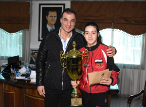 كرّم فراس معلا رئيس الاتحاد الرياضي العام اللاعبة الواعدة بكرة الطاولة هند ظاظا التي تأهلت إلى أولمبياد طوكيو بعد إحرازها المركز الأول في بطولة غرب أسيا التي اختتمت في الأردن مؤخراً.