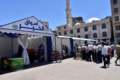 تستمر محافظة حمص بتوزيع المواد التموينية من المستوردين والمنتجين للمواطن مباشرة بسعر الكلفة عبر منافذ البيع في أسواق الخير وسط حمص , حيث طرح أمس في هذه الأسواق السكر بسعر 800ل .س للكغ والرز بسعر 1050ل.س للكغ للبيع مباشرة بالإضافة إلى الزيوت النباتية بسعر 2300 لليتر للمستهلك مع الإشارة أن العاملين في منافذ البيع هم من الفرق التطوعية من الجمعيات الخيرية والأهلية لدى مديرية الشؤون الاجتماعية والعمل . المواطنون عبروا عن ارتياحهم لهذه المبادرة وانخفاض أسعار الرز والسكر والزيوت النباتية في أسواق الخير في ظل ارتفاع الأسعار في الأسواق.