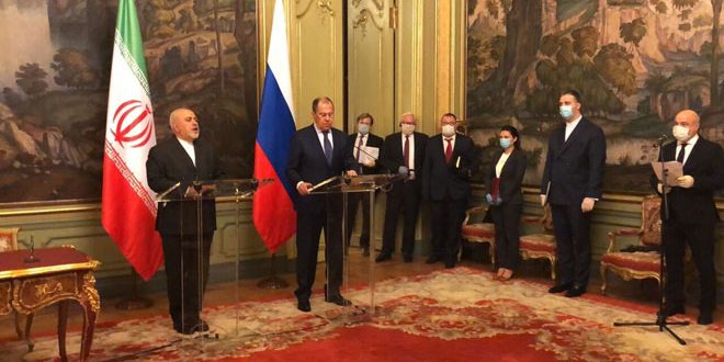 وكان ظريف أوضح في مستهل لقائه لافروف أن الولايات المتحدة تواصل العمل على زعزعة الاستقرار في سورية والمنطقة وأن فرضها المزيد من الإجراءات الاقتصادية القسرية التي تؤثر على الشعب السوري يثير القلق وقال: “يجب أن نتأكد من أن واشنطن لن تحقق أهدافها”.