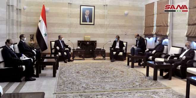 حضر اللقاء الأمين العام لرئاسة مجلس الوزراء الدكتور قيس خضر والسفير الإيراني في دمشق جواد ترك آبادي.