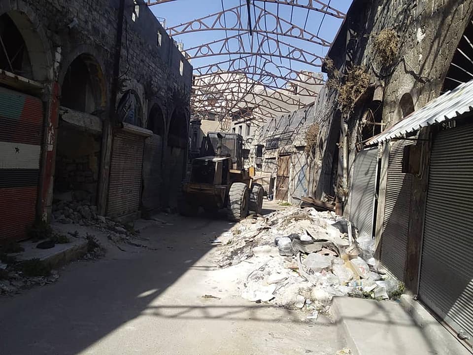 بدأت آليات وورشات مديرية النظافة في مجلس مدينة حمص بترحيل الأنقاض والمخلفات المتناثرة والمنتشرة في منطقة سوق الناعورة ومحيط قلعة حمص والتي تعيق حركة السير في الشوارع .