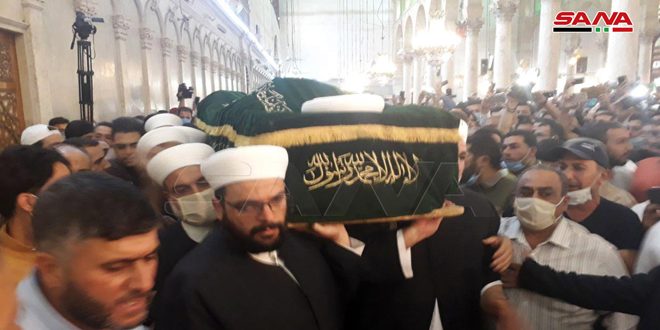 ممثلاً الرئيس الأسد … وزير الأوقاف يشارك بتشييع جثمان الشهيد الشيخ محمد عدنان الأفيوني مفتي دمشق وريفها