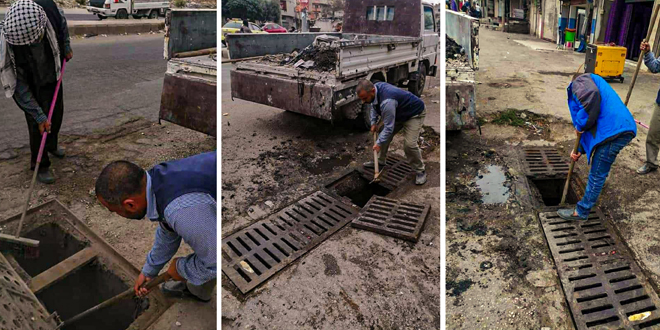 وأشار النقري إلى أن ورشات الطوارئ باشرت من منتصف ليلة الأربعاء الماضية بتنظيف وضخ الشوايات لمعالجة التجمعات وشملت 13 شارعاً لافتاً إلى أن الورشات أنهت مؤخراً تعزيل الشوايات في كل محاور الشوارع الرئيسة في المدينة إضافة إلى إنشاء 150 من المصارف المطرية الصغيرة والمصارف الكبيرة “مصائد” في الشوارع التي حدثت فيها تجمعات مطرية سابقاً ومنها وادي السايح ودلال النشيواتي والمدينة الجامعية والأهرام والستين والطلائع على طريق حماة ومحمود الأخرس والميماس وديك الجن ونزار قباني وجب الجندلي.