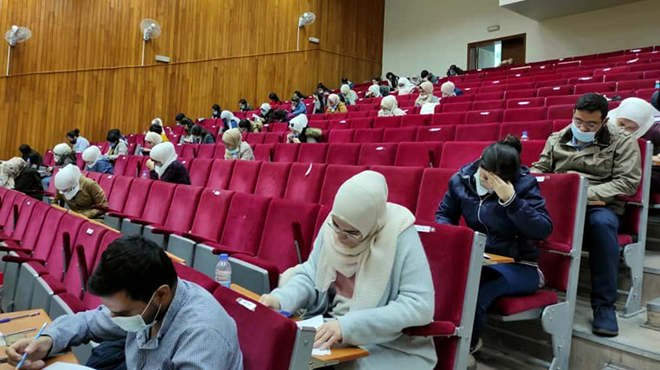 تقدم أمس 396 طالبا وطالبا في مركز جامعة البعث للجلسة الأولى من الامتحان الطبي الموحد دورة تشرين 2020 الذي أجراه مركز القياس والتقويم في وزارة التعليم العالي والبحث العلمي لطلاب الجامعات السورية الحكومية والخاصة والجامعات غير السورية مع اتخاذ كافة التدابير والوسائل الاحترازية للوقاية من فيروس كوفيد 19 .
