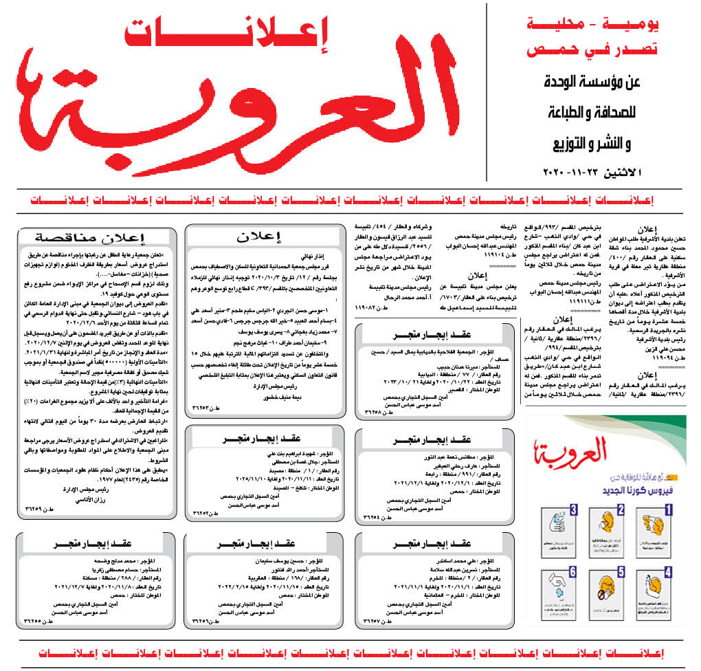 اعلانات العروبة إعلانات في 23 تشرين ثاني , 2020 شارك FacebookWhatsAppFacebook MessengerTelegramTwitter