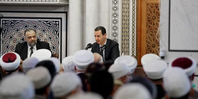 شارك السيد الرئيس بشار الأسد أمس في الاجتماع الدوري الموسع الذي تعقده وزارة الأوقاف للسادة العلماء والعالمات وذلك في جامع العثمان بدمشق.