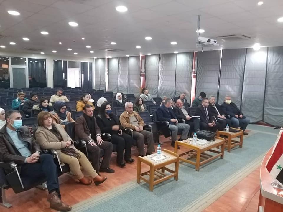 و ألقى المهندس سامر استانبولي محاضرة بعنوان نمذجة وتحليل إنشائي لمنشأ حجري قديم متضرر بحريق _ خان حاج موسى- .