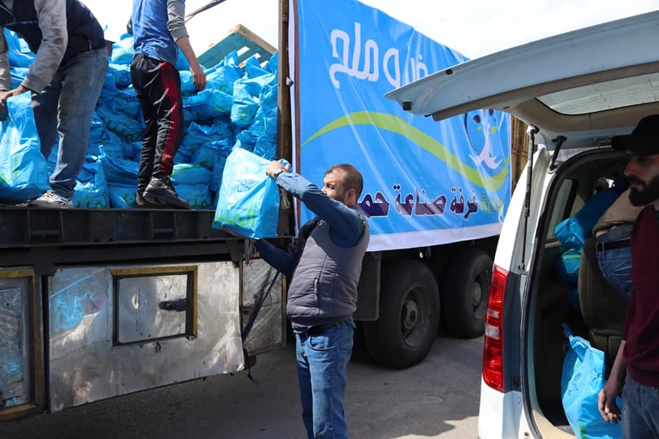 خبز وملح وحصوة تسند جرة شعار تتميز به غرفة صناعة حمص وأطلقته عنواناً لمبادرتها التي تواظب عليها منذ سنوات لدعم الأسر الأكثر احتياجاً