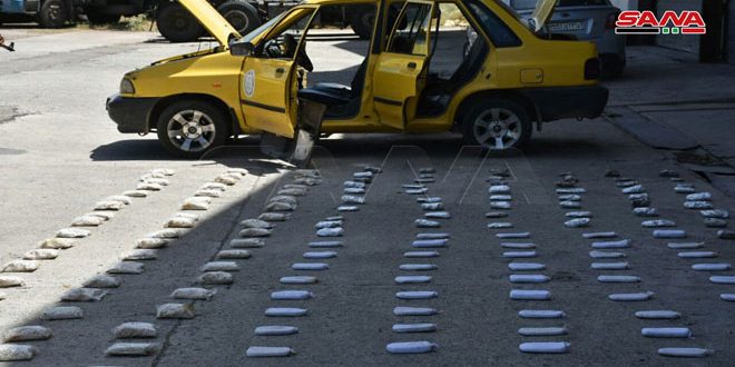 ضبطت الجهات المختصة في حمص سيارة عامة “سابا” فيها كميات كبيرة من الحشيش المخدر بريف حمص الجنوبي الغربي وألقت القبض على شخصين متلبسين بالجريمة.