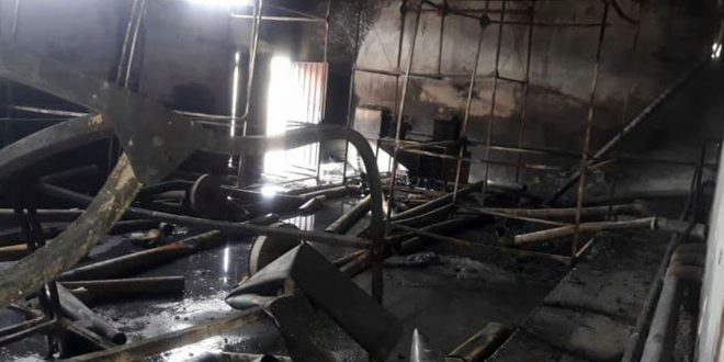 أخمد كوادر فوج إطفاء حمص حريقا نشب في معمل للفلين بمدينة حسياء الصناعية.