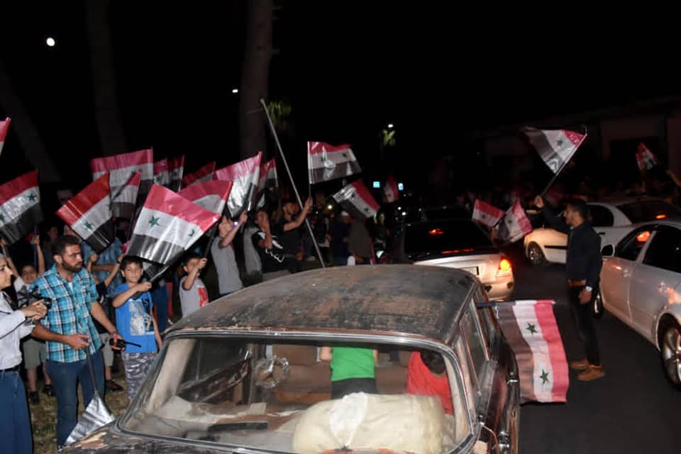 وعبر المشاركون عن فرحتهم برفع الاعلام الوطنية وصور الدكتور الأسد مؤكدين ان هذا الانتصار انما هو انتصار لدماء الشهداء والجرحى ولتضحيات الجيش العربي السوري الذي يصون ارض الوطن.