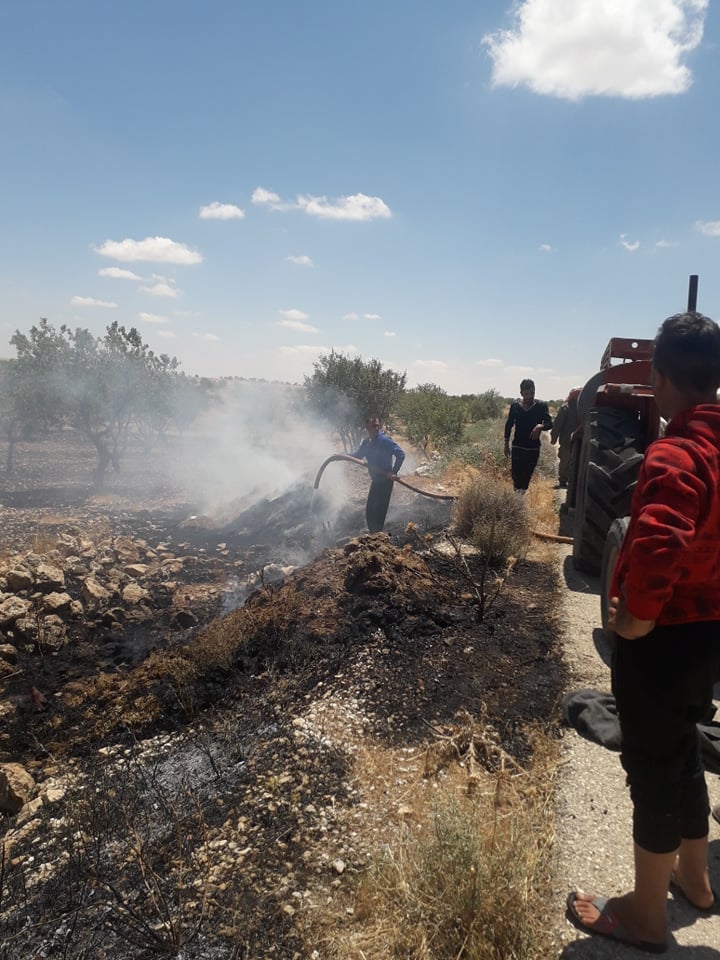 وذكر رئيس البلدية رمضان العيسى أن النيران أتت على حوالي عشرة دونمات من أشجار اللوز والزيتون وتم استخدام صهريج البلدية في إخماد الحريق و عمليات التبريد و قد ساعد أهالي البلدة بإخماده و منع انتشاره إلى الأراضي المحيطة المزروعة بالشعير .