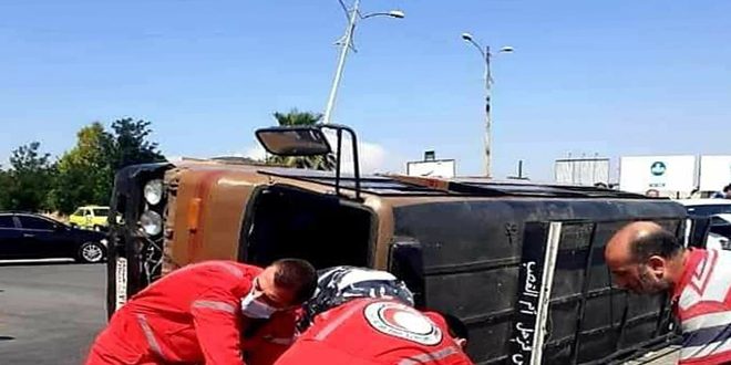 وذكر العميد غياث عاقل مدير الدفاع المدني بحمص أن الحادث نجم عن اصطدام سيارة سياحية خاصة بحافلة نقل ركاب ما أدى إلى تدهورها مشيراً إلى أنه تم إسعاف المصابين إلى مشفى الهلال الأحمر لتلقي العلاج.