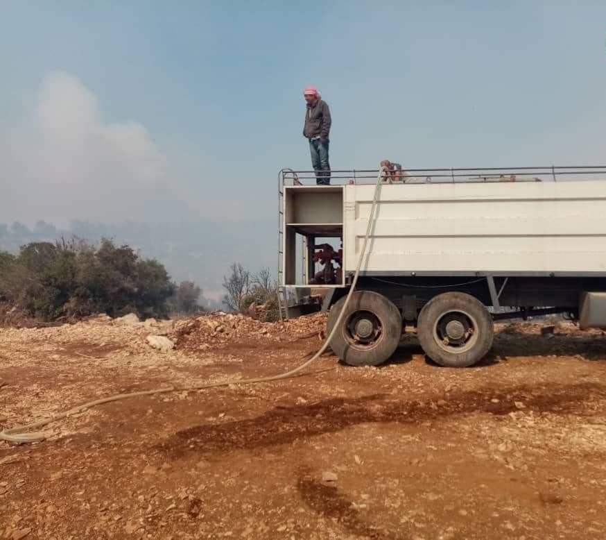 وذكر اللواء سعيد العوض مدير عام الدفاع المدني أن فرق الإطفاء تتعامل بصعوبة مع مجموعة البقع النارية التي امتدت من الأراضي اللبنانية تجاه أطراف قرية أكوم لافتاً إلى مشاركة حوامات الجيش العربي السوري بعملية إخماد الحريق إضافة إلى جنود الجيش العربي السوري ومؤازرة من فرق الإطفاء الأخرى.