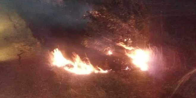 أخمد عناصر الدفاع المدني مساء أمس حريقاً اندلع بأعشاب يابسة وأشجار كينا على الطريق الواصل بين بلدتي الصويري وبلقسة بريف حمص الغربي.