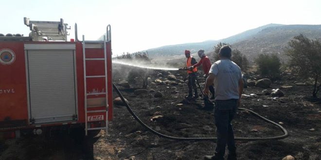 أخمد عناصر الدفاع المدني في محافظة حمص حريقاً اندلع في أشجار زيتون وأعشاب يابسة بالأراضي الزراعية لقرية بلوزة في منطقة القصير بريف المحافظة الجنوبي الغربي.