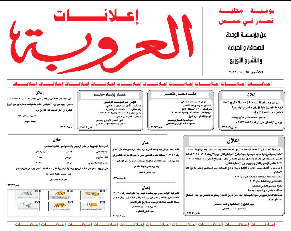 اعلانات العروبة إعلانات في 25 تشرين أول , 2021 شارك FacebookWhatsAppFacebook MessengerTelegramTwitter