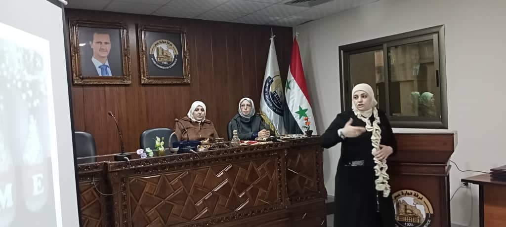 وشاركت المدربة رشا شمة بالحديث عن الأغراض اليدوية وأعمال الفن والديكور والزخرفة واستغلال التوالف من الكرتون والورق والبلاستيك وغيره.