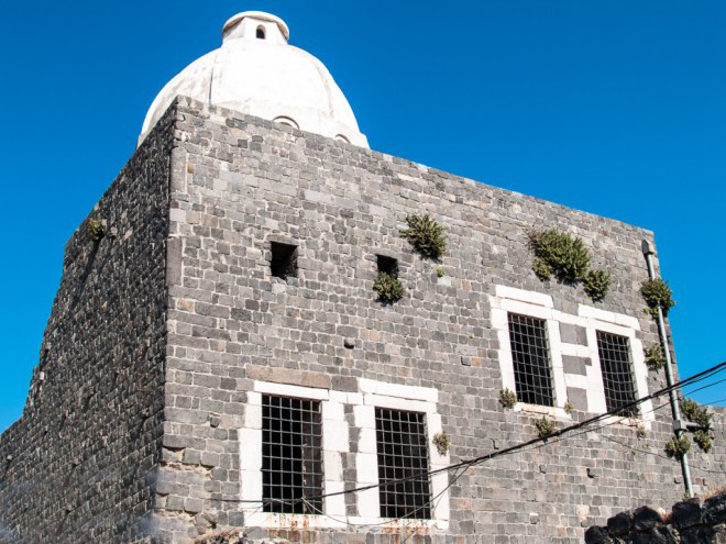للدار مدخل جميل يعلوه حجر نقش عليه “الله حق”، وفوقه صورة إبريق ماء يعلوه حجر على شكل كوب ماء, أما قوس المدخل فهو مزخرف هندسياً، ويؤدي المدخل إلى دهليز يصل عدة قاعات بديعة العمارة وتزدان بالمقرنصات الركنية ومن ثم يؤدي إلى الباحة الرئيسية للبناء, ويتوسط البناء قاعة كبيرة مقببة والقبة مصنوعة من الآجر المشوي فيها مقرنصات رائعة الجمال, وللقاعة أربعة مداخل تؤدي إلى غرف الدار مسقوفة بعقود حجرية تتوسطها زخارف جصيّة، وفي شمال القاعة يوجد غرفة مربعة فيها درج حجري بازلتي يؤدي إلى قاعة، ويستمر الدرج إلى مستوى أعلى حيث يوجد غرفة سقفها من عقود مزخرفة وبجانب الغرفة دهليز, وللدار باحة سماوية مكشوفة على طول البناء المتّجه من الجنوب إلى الشمال ويتوسط الباحة بركة مبنية من الحجر.