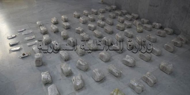 وأوضحت وزارة الداخلية في بيان اليوم أنه في إطار الجهود المبذولة لمكافحة ظاهرة المخدرات بشتى أنواعها ومن خلال المتابعة تمكن فرع مكافحة المخدرات في حمص من إلقاء القبض على شخصين ضمن منزلهما في حي السبيل حيث عثر بحوزتهما على 95 كف حشيش مخدر بوزن 90 كيلوغراماً.