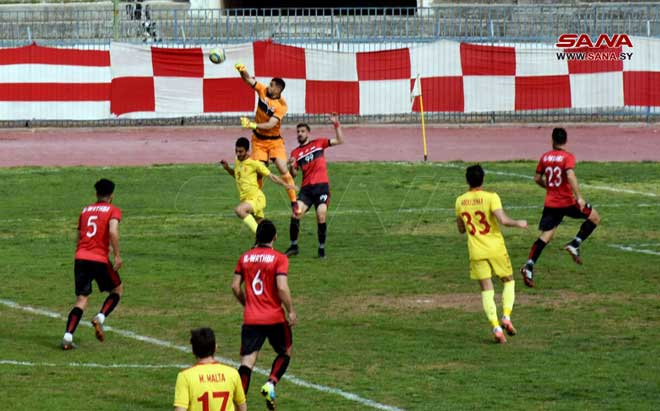 حافظ الوثبة على صدارة الدوري الكروي الممتاز بتعادله السلبي مع ضيفه تشرين حامل اللقب على ملعب الباسل في حمص بعد مباراة متوسطة المستوى ومتكافئة شهدت طرد مهاجم الوثبة مؤنس أبو عمشة قبل النهاية بقليل وفرص متكافئة أخطرها كرتي نصوح نكدلي لتشرين بالعارضة والقائم وفرصتي الوثبة لأنس بوطة وصبحي شوفان تصدى لهما الحارس أحمد مدنية باقتدار ..ليتقاسم الفريقان نقطتي التعادل الوحيد بالجولة الخامسة إيابا وليحافظا على مركزيهما وفارق النقطة الوثبة بالصدارة 45 نقطة وتشرين ثانيا 44 نقطة بقيادة حكام أردنيين وبلا جمهور عقوبة إتحاد ية..ومن جبلة عاد الكرامة بخسارة أمام حطين
