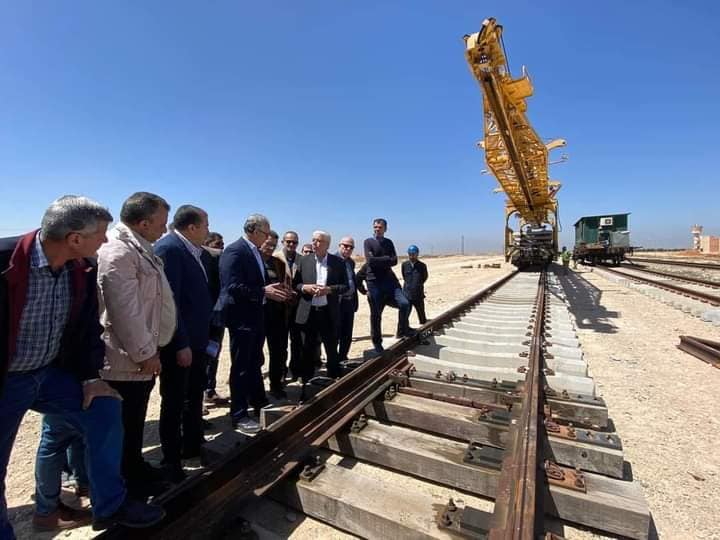 وزير النقل م. زهير خزيّم تفقد الأعمال الفنية التي ينفذها عمال مؤسسة الخطوط الحديدية السـورية ، وشركة إنشاء الخطوط لإنجاز المسار المطلوب ، والتي تشمل مد السكة الحديدية وإنشاء المرفأ الجاف في حسياء الصناعية مع مستلزماته من ساحات تحميل وتفريغ الحاويات ومستودعات ونقاط التخديم ، واطلع على تفاصيل المشروع ومراحله والجدول الزمني المحدد له ونسب التنفيذ .
