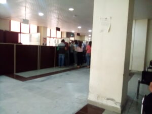 وهنا يتزايد عدد المراجعين وترى مشاهد الازدحام المزعجة .. والكهرباء عادة يتم وصلها الساعة التاسعة والنصف وأحيانا بعد هذا الوقت … والمزعج أيضا أن موظفة ” تصديق الوكالات” تطلب من المراجعين لصق الطوابع على المعاملة والمشكلة الكبرى هي في حال أخطأ ووضع الطوابع في المكان غير المخصص لها عندها يتوجب عليه تجديد المعاملة !!