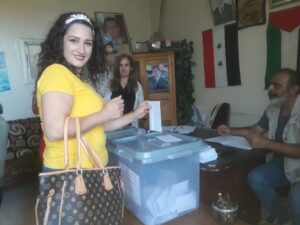 آسيا القاسم مدرسة قالت: الانتخابات حق وواجب على كل مواطن سوري يريد الخير لبلده ونحن بحاجة إلى وجود أصحاب الكفاءات الذين يملكون المؤهلات العلمية والقادرين على قرن القول بالفعل .