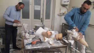 مهدي حبابة أوضح أن المركز مصغّر وفيه ثلاثة فنيين اختصاص أطراف اصطناعية والخدمات التي يتم تقديمها أطراف اصطناعية تحت الركبة وفوق الركبة وأطراف سيليكون قفل وسيليكون صمام باستخدام مواد نوعية ريغال وبعض قطع اتوبوك موجودة مسبقاً بالمركز ونقوم بصناعة طرف كامل وبأعمال الصيانة والتعديل ضمن الإمكانيات المتاحة ونستقبل المراجعين من حمص ومن مختلف المحافظات .