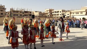 من جهتها مدربة الفنون الشعبية في دائرة المسرح المدرسي بحمص رنا العبد الله قالت: إنَّ الفرقة قدَّمت عدَّة لوحات أثناء افتتاح المجمع التربوي وتضم ٢٨ طفلاً وطفلة من عدة مدارس قدَّموا لوحات فنية وطنية وأغنية روسية.