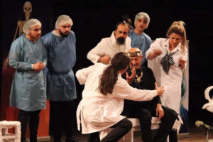 طاقم العرض قدم جهودا تمثيلية واضحة وأجادوا جميعهم بدءا من الممثل الكبير زيناتي قدسية وبقية المثلين الذين تألقوا بحضورهم على خشبة المسرح وهم مثال جمول التي جسدت دور جاكلين وحسين عرب الذي جسد دور روبرت ورامي جبر الذي جسد شخصية البروفيسور .