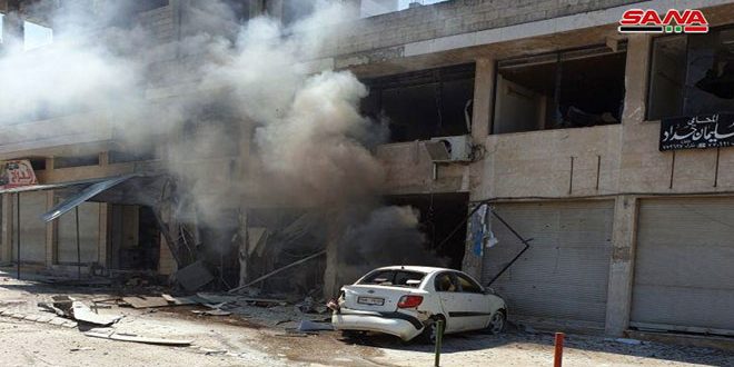 واستشهد أمس 4 أطفال وامرأة وأصيب 6 أطفال آخرين نتيجة اعتداء المجموعات الإرهابية المتمركزة فى محافظة إدلب بالصواريخ على مركز تعليمي للأطفال فى مدينة السقيلبية شمال مدينة حماة.